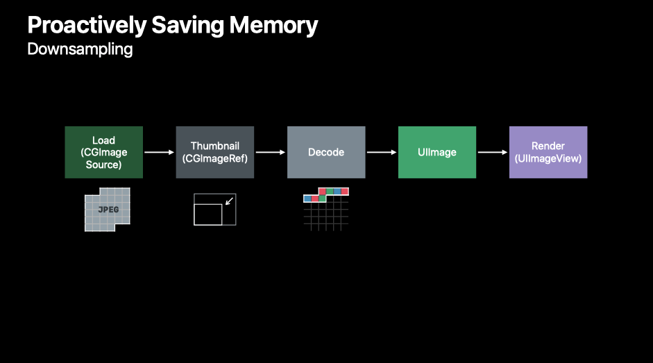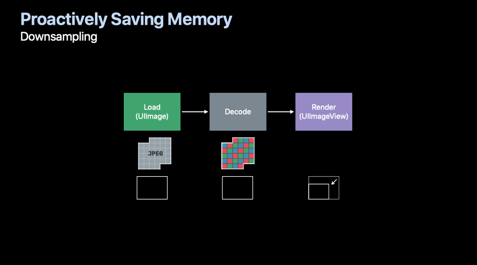 在子线程将整个图片进行解码会带来一个新的问题,那就是内存问题。通常图片尺寸是比在屏幕上的显示区域大很多的,在屏幕渲染时会对图片进行伸缩裁剪等调整。因此,可以在图片界面之前对图片进行下采样,减小 image buffer 占用。